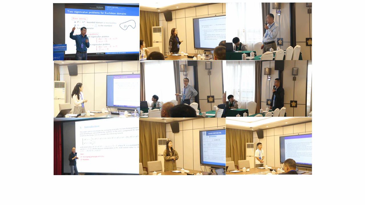 本次研讨会包括学术邀请报告、党建创新论坛、青年教师学术论坛及研究生学术论坛4个板块,设有1个主会场2个分会场。教育部长江特聘教授,华东师范大学数学科学学院谈胜利教授、国家青年千人计划入选者王作勤、华中科技大学数学与统计学院教授吴付科作了大会邀请报告。