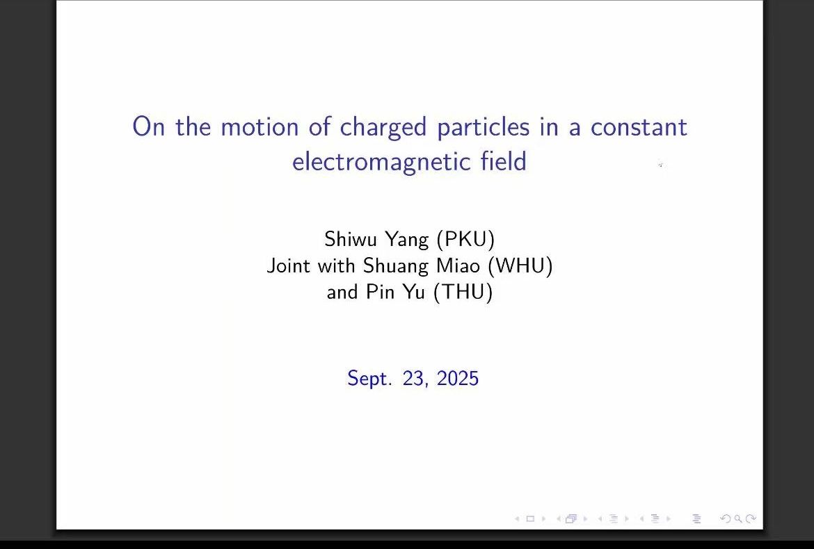 (通讯员陈鹏)9月23日上午,北京大学北京国际数学研究中心杨诗武研究员应三峡数学研究中心邀请,为理学院师生进行了题为“On the motion of charged particles in a constant electromagnetic field”的线上学术报告,理学院部分教师及研究生参加了本次学术活动。