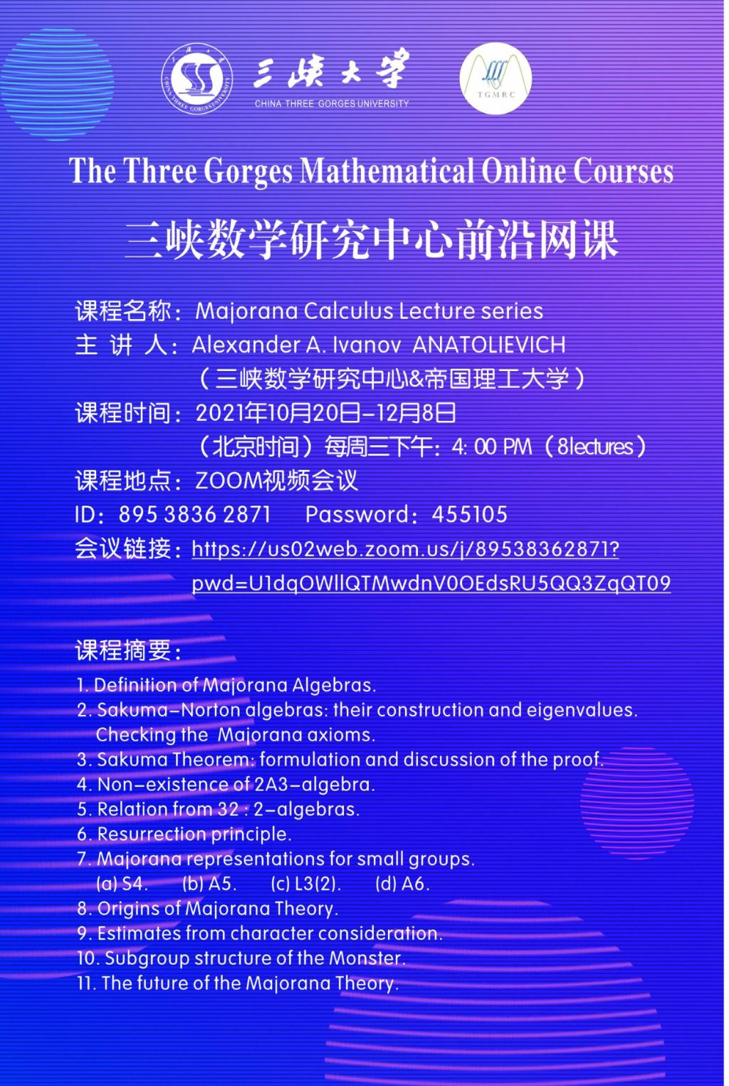 三峡数学研究中心国际前沿网课