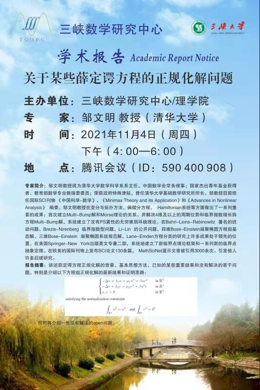 关于某些薛定谔方程的正规化解问题 邹文明教授(清华大学)