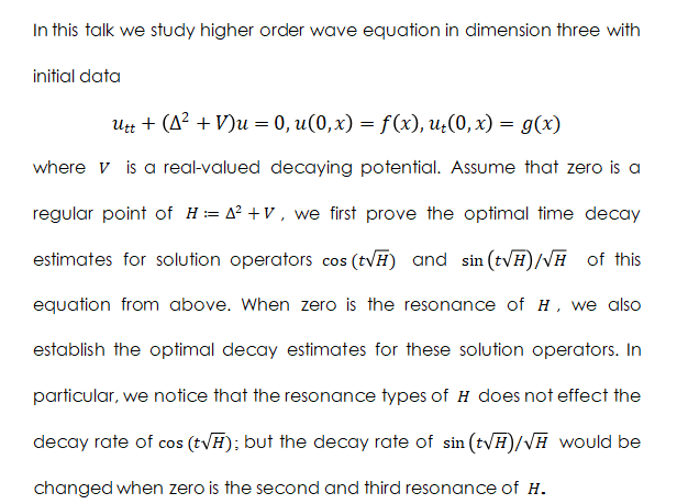 讲座题目:Decay estimates for higher order wave equation with potential in dimension three